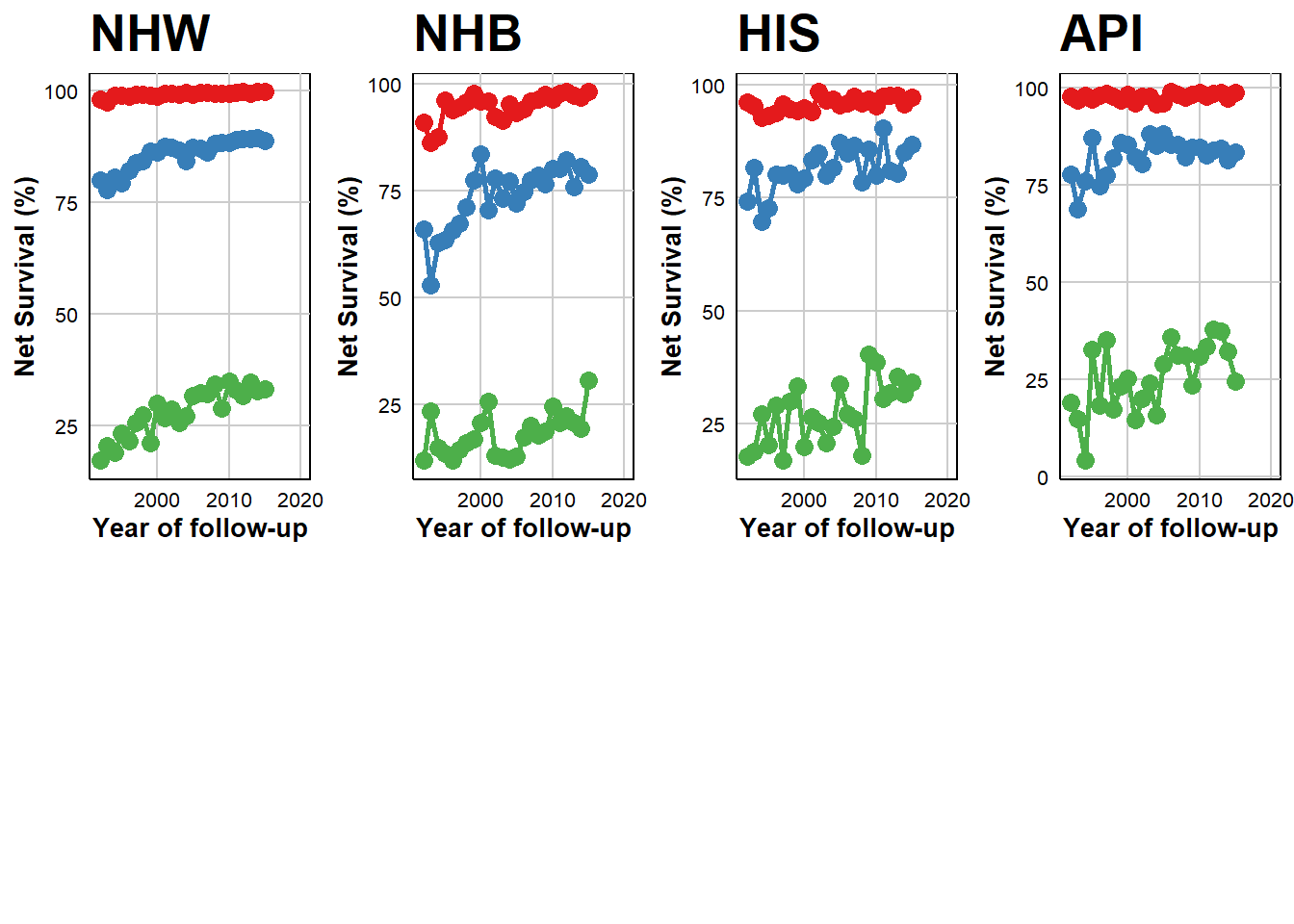 Temporal Trends in 5-Year Age-Adjusted Net Survival by Race, Ethnicity, and Cancer Stage