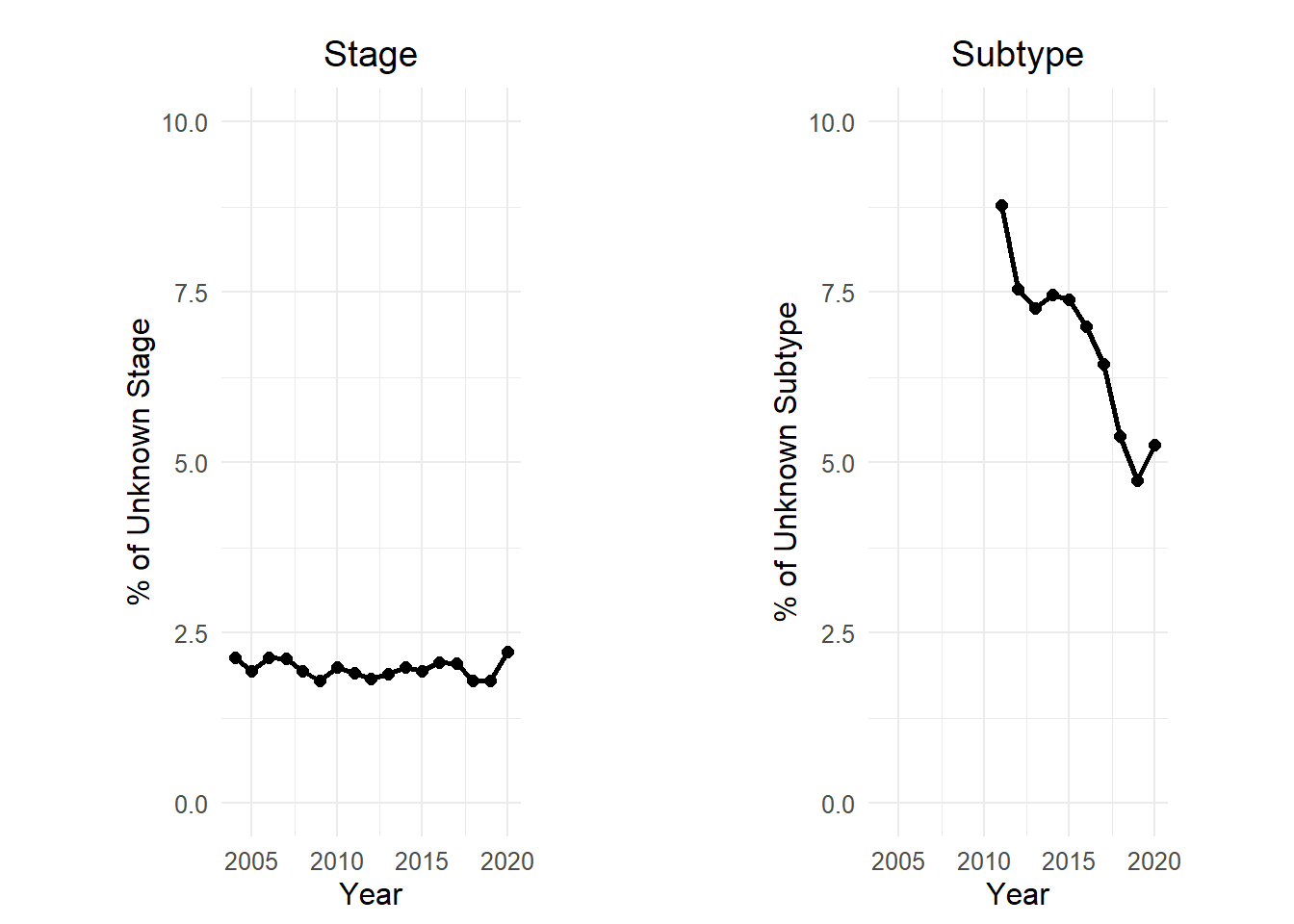 Our main goal is to evaluate the 5-year relative survival for malignant breast cancer by subtype, and investigate the extent to which survival differences among the major racial and ethnic groups have progressed over the span of nearly three decades, from 1992 to 2020.